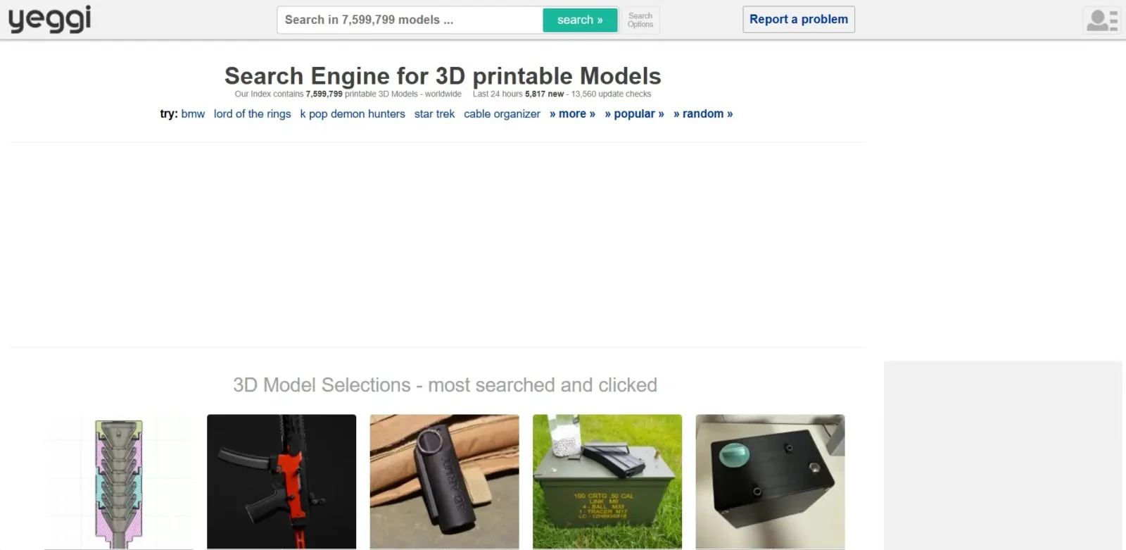 Enfin, Yeggi n’est pas une bibliothèque de modèles en soi, mais un moteur de recherche spécialisé dans les fichiers 3D. Tapez simplement un mot-clé, et Yeggi va chercher pour vous sur différentes plateformes (Thingiverse, Printables, Cults, etc.).